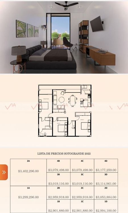 3 recámaras, Sala-Comedor, Cocina, Clóset de Blancos, Cuarto de Lavado, Terraza, Recámara Principal con Baño Completo y Terraza, 2 Recámaras Secundarias con Clóset, Baño Completo y 2 Cajones de Estacionamiento.