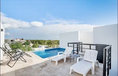 Tiene 2 amplias recámaras cada una con baño, ademas subiendo a una segunda terraza o roof top se aprecian vistas panorámicas desde la alberca privada, esta terraza tiene un baño adicional.