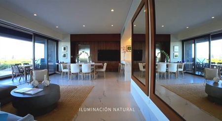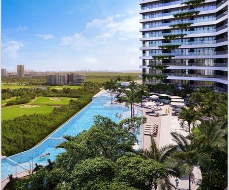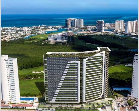Departamento en venta en una de las zonas mas exclusivas de Puerto Cancún, dentro de una reserva natural con increíbles vistas al mar caribe y al campo de Golf . Cada elevador abre directamente al departamento. El departamento cuenta con amplia área social que consta de sala, comedor y cocina las cuales tienen vistas al campo de golf y al mar, cuenta con ventanal el cual se abre en su totalidad para integrar el área social con la terraza. Cuenta con dos recámaras la principal con baño completo , vestidor y terraza con vista al mar, la secundaria cuenta con closet de pared y terraza. El departamento se entrega totalmente terminado y equipado, con canceleria, carpinteria, ,cocina, aire acondicionado. Toda la ventanería está certificada contra huracanes, cuenta con dos cajones de estacionamiento. El edificio es totalmente sustentable, cuenta con paneles solares y energía eólica así ayudaremos al planeta ya tu familia. El proyecto se diseñó mediante ventilación cruzada para que el flujo del viento mantenga el departamento fresco también se instalará un sistema de vegetación endémica que nos sirve para mantener fresca la fachada y evitar usar el AC. El proyecto estará terminado para diciembre del 2024.
