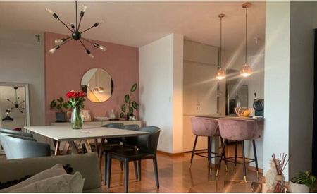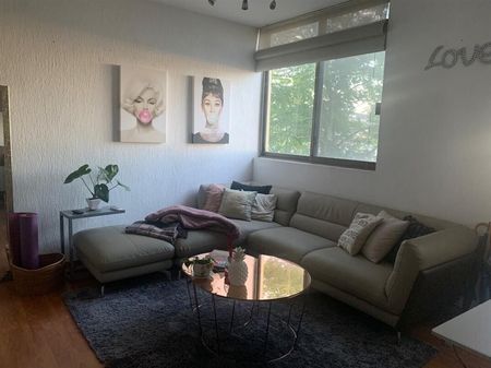 Sala, comedor con salida a terraza de 15 mts para integrar reuniones, 2 recámaras (ppl c/baño en interior), secundaria comparte con visita o bien con potencial para conectar a cuarto de servicio (bodega) si no se desea usar y ampliar espacio, espaciosa lavandería y dos lugares de estacionamiento techado en tándem. Se vende equipado y amueblado, libre de gravamen.