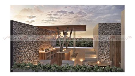 ubicado en el #er piso cuenta con 2 habitaciones cada una con su baño completo con canceles, closets, cocina integral, pisos de porcelanato y acabados de lujo. Incluye patio y terraza con jacuzzi.