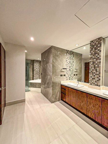 Sala comedor, bar, baño de visitas, cocina equipada con electrodomésticos, 3 recamaras con baño y vestidor cada una, cuarto de servicio con baño completo, lavandería equipada con lavadora y secadora, 2 terrazas, 4 cajones de estacionamiento y bodega, vigilancia 24/7. Amenidades: alberca, asadores, gimnasio, salón, de eventos. MG Id 13807 / 21266