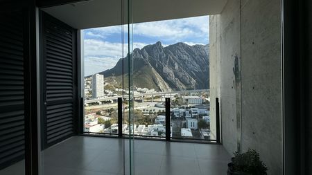 Hermoso departamento completamente equipado con un área social y balcón con hermosa vista a la Huasteca. Dos recámaras, cada uno con su baño completo, además de un medio baño de visitas. Cocina completamente equipada. El departamento cuenta con una bodega.
