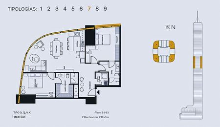 El edificio más alto de Latinoamerica, ícono en la arquitectura vertical. Proyecto de departamentos, oficinas, hotel y sky deck. Departamentos desde 50.49 m 1 recámara 1 baño, hasta 2/3 Recámaras y 2/3 baños de 201.32 m2.