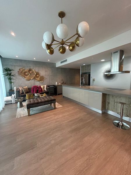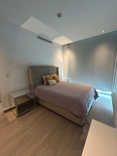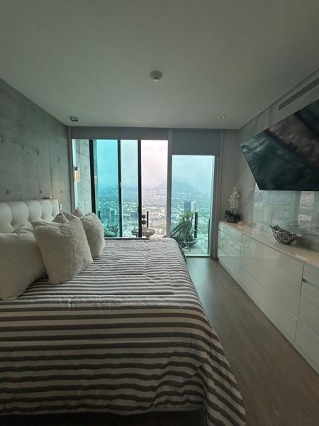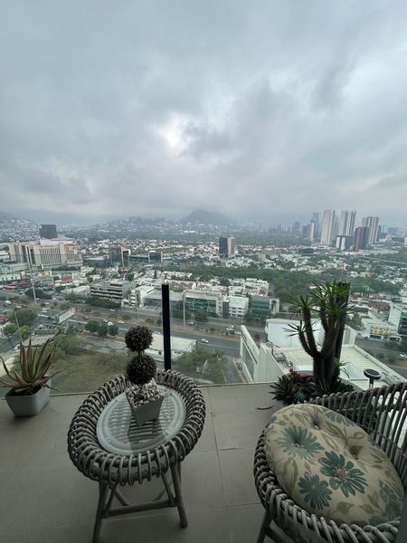 Precioso departamento finamente amueblado y decorado en torre con Amenidades y vigilancia 24/7, con vistas espectaculares a las montañas, recibidor, medio baño de visitas, ventanería Duo-Vent, área social amplia con balcón, cocina súper equipada con electrodomésticos, 3 recámaras, 3 baños y dos vestidores, estancia familiar y otro balcón de salida de la recámara principal, lavandería con cuarto de servicio con su baño.