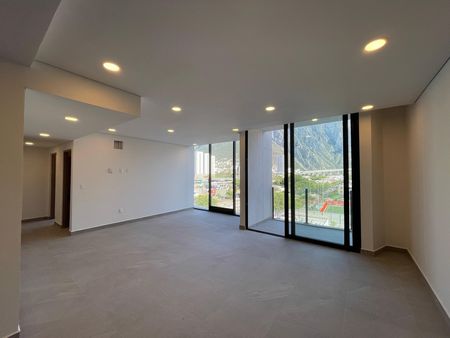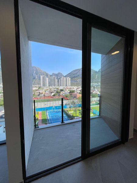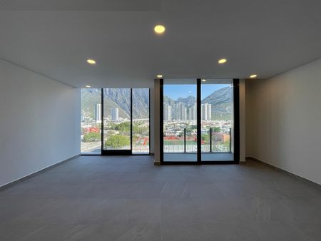 Este departamento de 121 m2 tiene balcón con vistas a la huasteca, cuenta con 2 recamaras con posibilidad de hacer una 3era recamara y cuenta con 3 baños completos.
