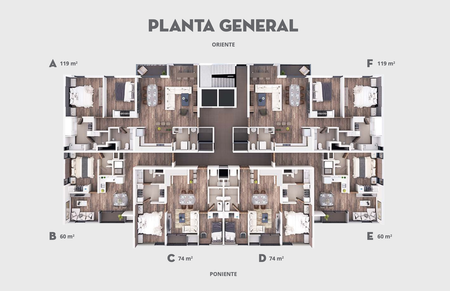 4 TORRES de 7 NIVELES con 6 DEPARTAMENTOS cada uno y el último nivel con áreas polivalentes que hacen un total de: 160 DEPARTAMENTOS.
