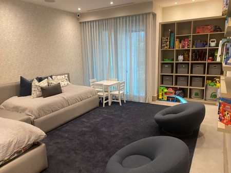 La Villa se encuentra en primer piso y es una villa de 3 pisos. En planta baja, se encuentra el sótano que va directo al estacionamiento y tiene un sótano que se puede utilizar para distintas cosas. La segunda planta que esta a nivel de la calle cuenta con la puerta principal, recibidor, una sala, comedor y terraza con espacios muy amplios. También se encuentra la cocina, ante comedor, estancia y el área de servicio. En planta alta se encuentra el área familiar con tres recamaras cada una con su baño completo y closet y una estancia familiar muy cómoda. La villa cuenta con sistema inteligente, tres estacionamientos, y una bodega. Además tienes acceso a todas las amenidades del complejo. Gimnasio, boliche, ludotéca, simulador de golf etc.