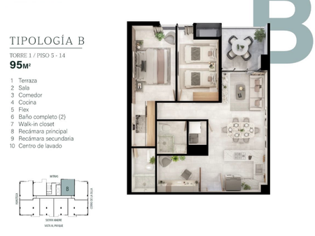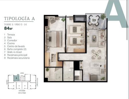 105 departamentos por torre, distribuidos en 14 niveles, ofreciendo 5 diferentes tipologías para seleccionar la que más se adapte a tu estilo de vida.