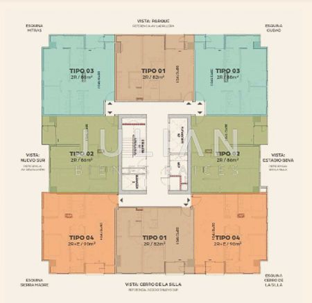 Departamentos desde 82 m2 hasta 120 m2.