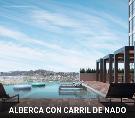 Alberca con carril de nado, chapoteadero, asoleadero, baños húmedos, áreas verdes, dog park, asadores en cabaña, fogatero, juegos infantiles y Terrazas.