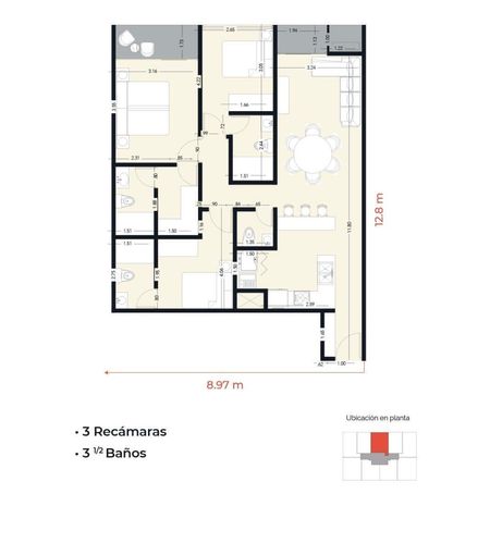 Departamentos desde 88.71 m² hasta 129.72 m²