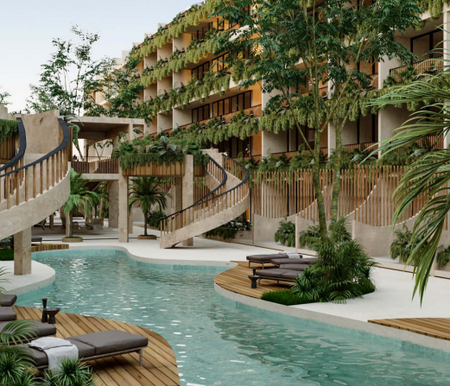 Un lugar vacacional para disfrutar en familia o con amigos; con amenidades y servicios llenos de confort, como: temazcal, área de yoga, jacuzzi, wellness spa, restaurant bar, gimnasio y área de cardio, asoleaderos y camastros, club de playa, pool bar, coworking, river pool, elavadores , estacionamiento para bicicletas y autos con lobby 24/7.