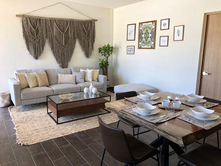 Este desarrollo cuenta con departamentos de 2 y 3 recamaras y algunos con cajón de estacionamiento con vistas a sus áreas verdes y piscinas.