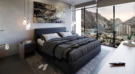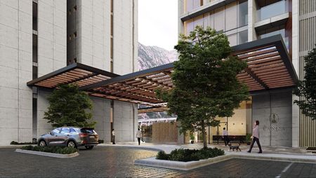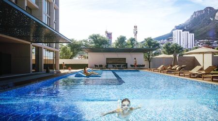 Dos torres de 224 departamentos y área comercial con espectaculares vistas a la Huasteca y al Cerro de las Mitras.