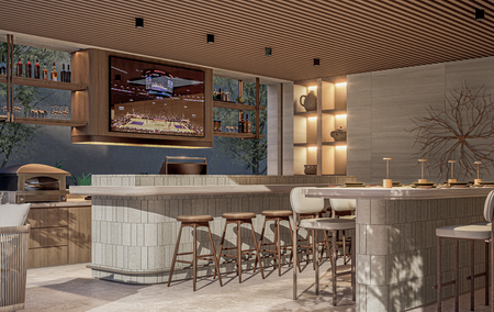 Amenidades de lujo: alberca con carril de nado, gimnasio, sport bar, coworking, ludoteca, pabellón culinario y más.