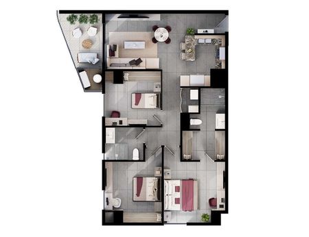 *Departamentos de 2 y 3 recámaras con superficies desde 93 m2 hasta los 115m2.