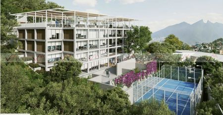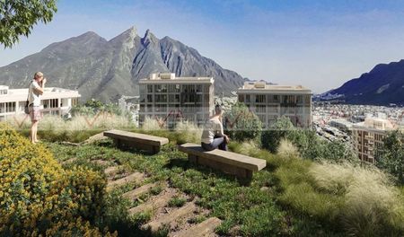La ubicación estratégica con vistas panorámicas hacia la Sierra Madre, Cerro de la Silla y edificios emblemáticos de Valle Oriente, y una alta conexión a comercios, servicios y transporte público.