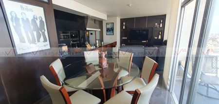 Amplio departamento equipado en venta en Dinastía, con una excelente distribución en 150 m2, incluye 2 recámaras con opción a una tercera, la principal con baño vestidor, la secundaria con baño afuera y closet de pared, 1 medio baño, 2 cajones de estacionamiento, balcón y vista espectacular.