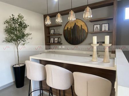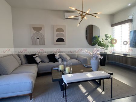 Hermosa casa ubicada en Fraccionamiento Cumbres La Joya de la Montaña Ubicado en el nuevo sector Dominio Cumbres; arriba de Ave. Paseo de Los Leones. Municipio de García, N.L. El fraccionamiento cuenta con con barda perimetral, acceso controlado, amenidades de casa club, gimnasio equipado, alberca con chapoteadero, palapas con asadores, cancha de fútbol y cancha de Pádel Hermoso diseño de Pozas Arquitectos Vive rodeado de la naturaleza y con espectaculares vistas hacia la montaña Ubicación privilegiada muy cerca de plazas comerciales, restaurantes, supermercados y hospital. 3 Plantas, 3 recámaras, 4.5 baños; PLANTA BAJA: Vestíbulo, Sala, comedor, cocina con alacena adicional, ½ baño de visitas, jardín y patio con terraza, estancia familiar, cochera techada para 2 autos, ; PLANTA ALTA: Sala de TV, Recámara principal con baño completo con doble lavabo, balcón y Walk In closet, 2 recámaras secundarias con baño completo, área de lavandería en segunda planta para mayor comodidad. TERCERA PLANTA: baño completo con regadera, área social, y terraza panorámica con pérgola. Hermosa vista hacia el Cerro de las MItras.