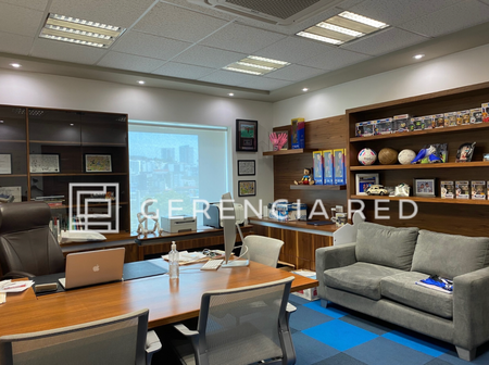 Elegante edificio de oficinas, situado en privilegiada ubicación, con excelentes accesos a todos los puntos de la ciudad, el cual cuenta con 2 áreas de recepción, 3 salas de juntas, sala polivalente de gran tamaño, 14 privados, cocina, comedor, elevadores, áreas comunes, terrazas equipadas con área de asador y barra de granito, site, bodega, elevadores, 33 cajones de estacionamiento, doble frente, caseta de vigilancia, muebles empotrados en finas maderas, mobiliario Herman Miller y López Morton, totalmente equipado y listo para entrar. BM
