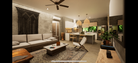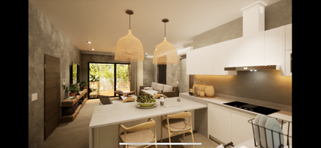 Encanto Riviera Tulum es un lugar íntimo que se encuentra dentro del Fracc. Riviera Tulum Residencial, lleno de áreas verdes y rodeado de árboles, cuenta con un diseño arquitectónico moderno, detalles cálidos, con espacios abiertos y amplios con mucha luz.