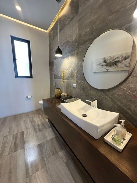1. En el primer nivel se encuentra la oficina, baño para visitas, amplia área social, espacio para doble sala, comedor con salida a terraza con vistas al área de cocina, equipamiento de alta gama área de antecomedor y family room.