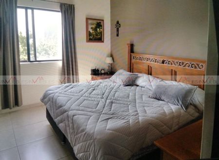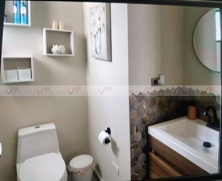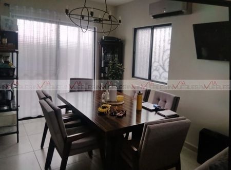 Bonita casa ubicada en un fraccionamiento exclusivo de Apodaca, con caseta de seguridad, área de alberca y palapa para eventos sociales, hay jardines con espacios de juegos infantiles y sección de aparatos para ejercitarse. En la planta baja, la casa tiene cochera techada para 2 autos, espacio para sala, comedor, medio baño para las visitas, cocina y patio que comunica al pasillo de servicio, en la planta alta se encuentran 3 recamaras, la principal con su vestidor y baño completo, las otras 2 recamaras comparten baño. Sin duda es un lugar para vivir con tranquilidad en familia! Agenda tu cita hoy mismo! Id Gvia: 117950