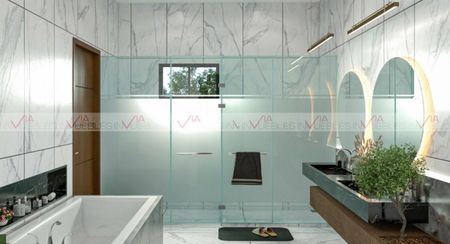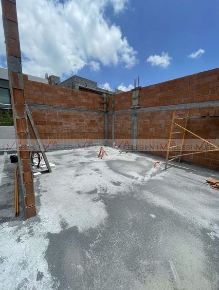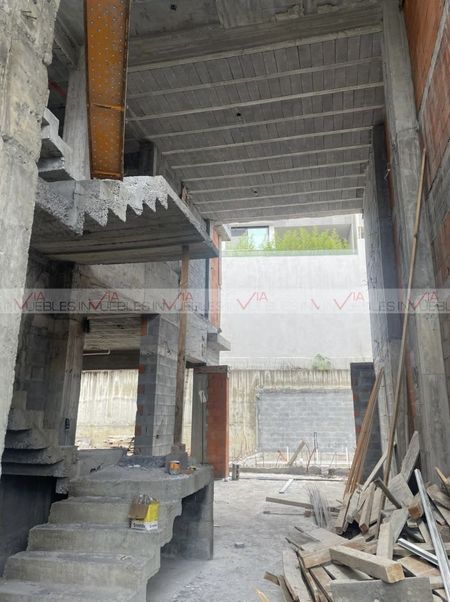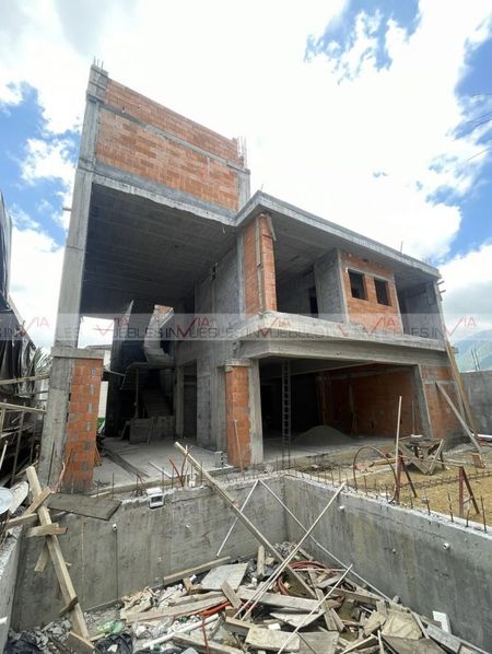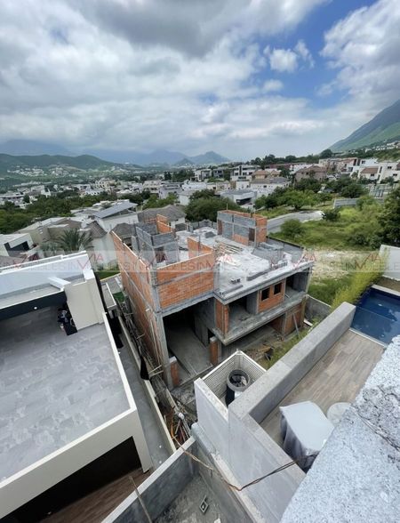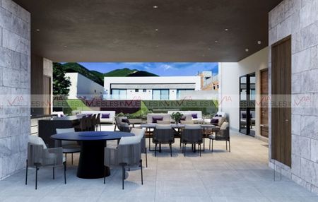 Casa en venta, llave en mano, en privada, Herradura Residencial y Club de Golf, Monterrey. Entrega Noviembre 2024. Terreno 500 m², construcción 751 m² más 60 m² de terraza sin techar. Esta residencia cuenta con las siguientes áreas: Planta baja: cochera para cuatro autos, acceso principal, sala en doble altura, comedor, bar, cocina integral con family room, despensa, medio baño de visitas, terraza techada con barra cubierta de granito con tarja y preparación de asador, jardín exterior con alberca, patio de servicio, lavandería, cuarto de servicio con baño completo, baño exterior para alberca con cuarto de máquinas, nicho de boilers y preparación para elevador. Planta alta: recámara principal con balcón, baño completo con tina de hidromasaje y vestidor tipo walking closet de dos niveles, dos recámaras secundarias, una con balcón, ambas con baño completo y vestidor walking closet, estancia sala de televisión, closet de blancos y sink, opción a otra recámara secundaria sobre doble altura. Azotea: cubo, escaleras para acceso a azotea, terraza techada con medio baño, bodega, área social exterior con barra cubierta de granito con tarja y preparación de asador, preparación para refrigerador y área de máquinas (climas, paneles, voz y datos, etcétera), área social interior y preparación para jacuzzi. Id Gvia: 113439