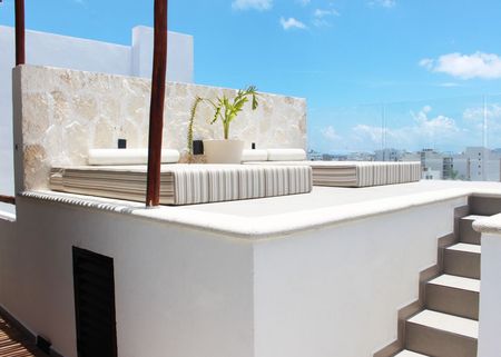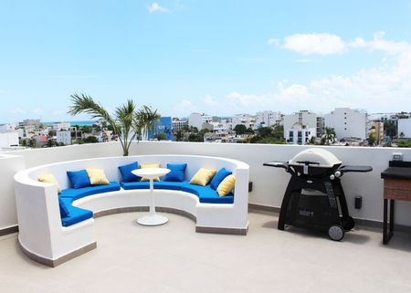 Rooftop con alberca, camastros, barra equipada, tarja y asador