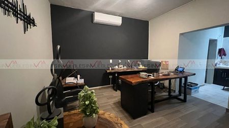 Oficina con excelente ubicación, cerca de Avenidas como Morones, Lázaro cárdenas, entre otras, Cuenta con puerta de seguridad, 1 privado con baño completo, área común para sala de juntas u oficina para varias persona, área para recepción, amplio patio con bodega, dos medios baños; se renta semi- amueblada, el pago de agua y teléfono, van dentro del costo de la renta. Id Gvia: 116685