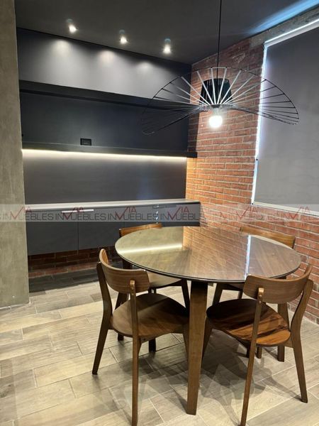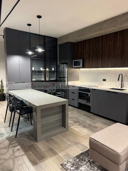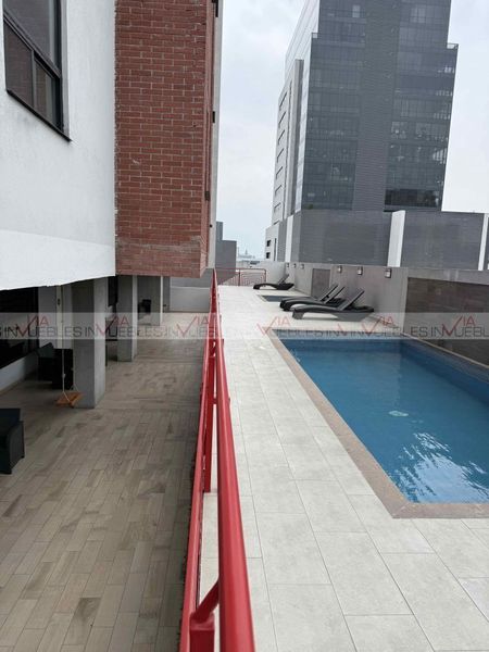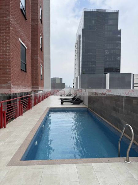 Espectacular departamento amueblado y equipado, decorado estilo industrial que lo hacen ver moderno y acogedor. Consta de 2 habitaciones totalmente equipadas, y cómodas pensando en tu descanso; cocina integral y sala comedor con un pequeño bar; cuenta con su área de lavandería equipada con lavadora y secadora para mayor comodidad. Servicios disponibles como televisión, luz, cable, boiler. El departamento se encuentra en el piso 19 y cuentas con 2 cajones de estacionamiento. El edificio podrías disfrutar de las amenidades como alberca, asoleaderos, gimnasio, terraza, coworking. Para mayor seguridad el acceso es controlado y con 2 elevadores de servicio; portón eléctrico para accesar al edificio. Se encuentra en una ubicación privilegiada del centro de Monterrey y con accesos a vías rápidas. Pet friendly. Ven a conocerlo. Id Gvia: 115611