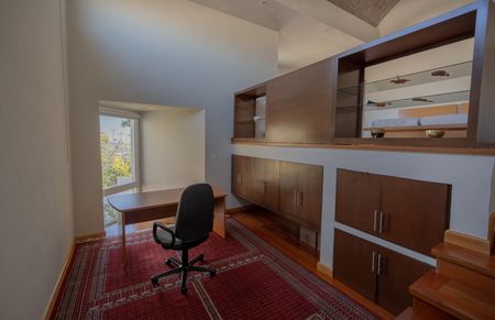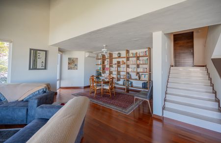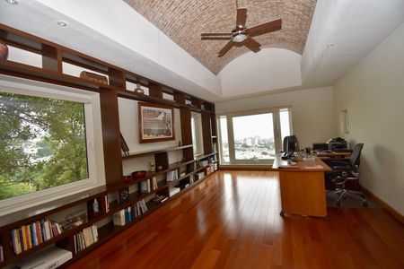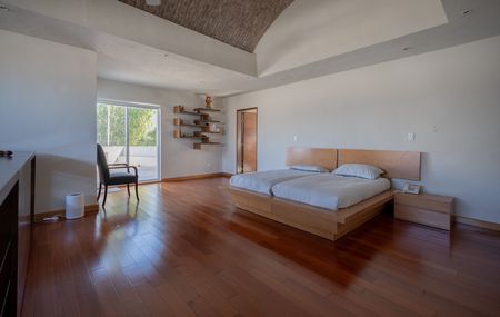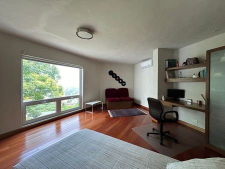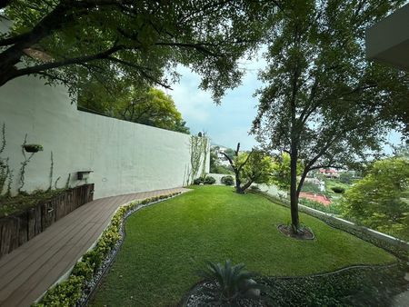 Recibidor, baño de visitas, amplia área social con luz natural, cocina equipada, biblioteca, gym, elevador interno que conecta a cada nivel de la casa, facilitando el acceso a todas las áreas, 5 recamaras cada una con baño y walk in closet, family, amplio jardín con terraza y alberca, 10 estacionamientos, paneles solares, cisterna, bodegas, dos cuartos de servicio.