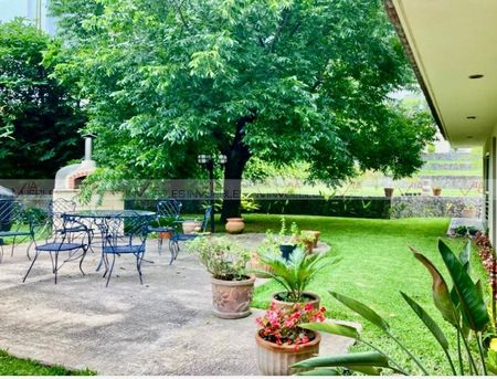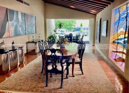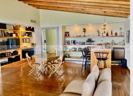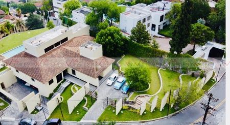 Espectacular residencia diseñada por el Arq. Tito Camargo ubicada en San Pedro Garza Garcia. Cuenta con 2,900 m2 de terreno y 1,100 m2 de construcción. Desde el imponente jardín se puede apreciar una vista inigualable de 180 grados, desde Santa Catarina hasta el Cerro de la Silla. En la parte interior nos encontramos con 4 recamaras, 2 en la planta baja y 2 en la planta alta, la principal tiene 2 vestidores grandes. La casa cuenta con sala, comedor, antecomedor, sala de juegos, gimnasio, 3 alacenas, sala de estar, cocina, lavandería, cuarto de servicio para 2 personas de servicio, bodega, taller, cuarto para mozo y jardinero. Cuenta con alberca de muy buen tamano, gran terraza para desayunar, palapa con asador, cochera techada para 4 carros y sin techar para 3. Id Gvia: 112145