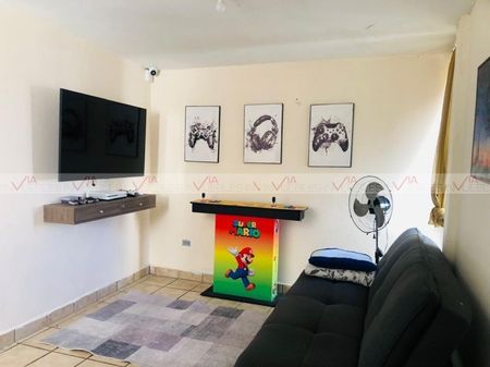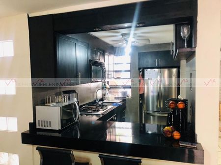 Casa en Excelente Zona Cerca del Centro de Santa Catarina y Areas Comerciales. La Casa cuenta al Frente con un Hall y su Cajón de Estacionamiento. Tiene Estacia de Buen Tamaño con Baño Completo; Cocina Integral con Barra de Granito Absolut Negro y Hornos Prácticamente Nuevos. Cuenta con un Patio Trasero con Asador. En el 2do.Piso se Encuentra la Recamara Principal con Closet y Baño; 2 Remaras Secundarias Comparten Baño y en el 3er Piso Se Encuentra La Lavandería y Dos Terrazas Una Con Vista Al Cerro de la Silla y la otra con Vista a la Huasteca. Equipada con Minisplits en Recamaras y Sala. Cuenta con un Sistema de Seguridad CCVT de 8 Cámara con Monitor. Id Gvia: 115609
