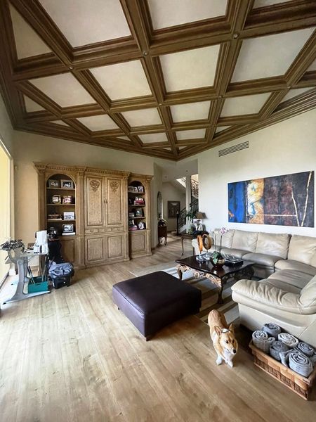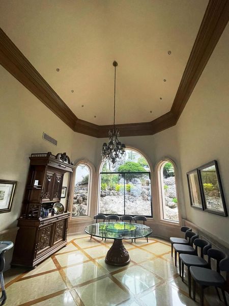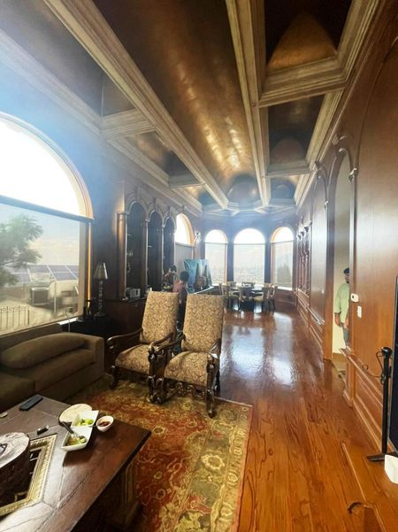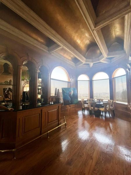 Cuenta con Recibidor interior de triple altura con diseño en techos, un enorme Cuarto de juegos/Sala de Cine con techos en doble altura y diseño de plafones, medio baño de visitas, Sala, Comedor, Antecomedor, Cocina muy amplia con doble alacena, Lavanderia y cuarto de servicio.