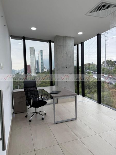 140m2 de oficinas corporativas, el espacio incluye hasta 8 oficinas privadas, una sala de juntas, islas de coworking, una entrada con área de recepción independiente y cocineta. Incluye muebles para oficina como escritorios largos, escritorios en L, mesa circular en sala de juntas, y varias sillas para oficina. Los acabados incluye tonos neutros, materiales industriales y ventanas grandes para que entre mucha luz natural y permite admirar las vistas panorámicas de San Pedro Garza García. Tiene su propio medidor de luz para la oficina, 7 cajones de estacionamiento y varios cajones de visita. El edificio y la oficina cuenta con controles de acceso y tiene un guardia de seguridad para la torre. Esta oficina esta ubicado en una zona premium con acceso inmediato a las vías principales de la ciudad como Lázaro Cárdenas, Gómez Morin y Gonzalitos. Es un espacio perfecto para oficinas corporativas de empresas en diferentes giros, para despachos de contadores o despacho de abogados, etc. Id Gvia: 115184