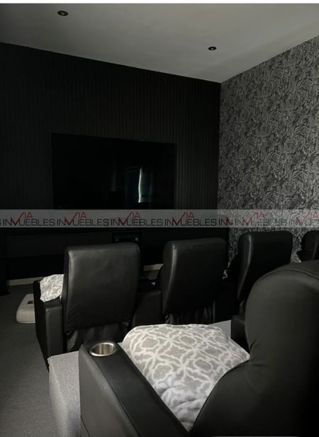 En planta baja cuenta con cocina equipada , espacio para sala , comedor, antecomedor, espectacular sala de cine con sus sillones de piel y su bar de granito.