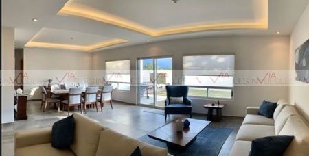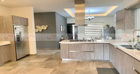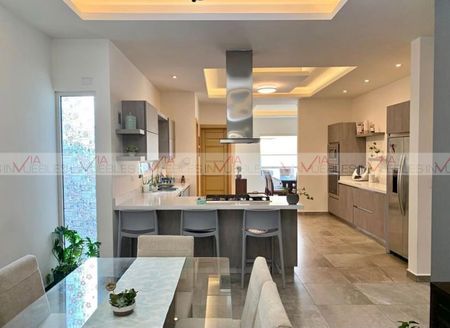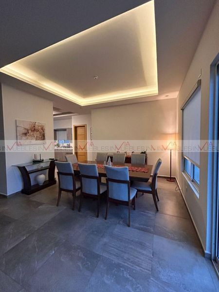 En su interior la casa cuenta con techos doble altura, plafones con iluminación led, área de bar, recibidor, bodega interior, sala, comedor, Family room, amplia alacena y una increíble cocina abierta equipada con electrodomésticos.