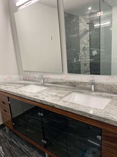 Precioso departamento en venta en la Nube.177 mts2 totales, de los cuales 8.75 mts2 son de balcón. Localizado en el piso 8. Posee acabados de lujo como piso de granito en área social y pasillos, y duela de madera en recámaras. El área social es muy amplia y cuenta con puerta corrediza que da acceso al balcón que posee increíbles vistas a los jardines y alberca. La cocina tiene concepto abierto, con gabinetes de madera y cubiertas de granito. Posee electrodomésticos de lujo como estufa con campana, microondas, horno y refrigerador de gran capacidad con doble cajón de congelador. Cuenta con 3 recámaras. Las secundarias comparten baño completo y poseen espacio para instalar clóset de pared. La recámara principal es muy amplia y posee área para instalar clóset vestidor. El baño principal posee 2 lavabos, regadera y baño con canceles de vidrio. Todas las ventanas del departamento tienen muy bonitas vistas y las de la recámara principal y de la sala poseen las conexiones para instalar cortinas eléctricas, si así se desea. El departamento posee cuarto de lavandería con tallador y espacio para centro de lavado, así como cuarto de servicio completo. Cuenta con 2 lugares de estacionamiento localizados en el S4 e identificados con los números 380 y 381. La torre Nube tiene increíbles amenidades como albercas, salones de eventos, salas de usos mixtos, terrazas, asadores, gimnasio, entre otros. Id Gvia: 111801