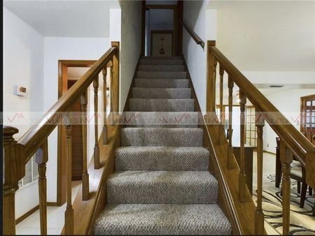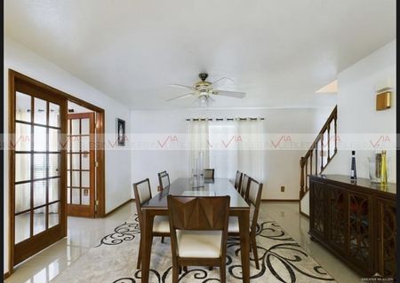 Casa de 2 pisos de 310 m2 de construcción en un hermoso terreno de 1537m2. Cuenta con 4 amplias recamaras con closets, 3 de ellas con baños muy amplios con tina de baño y la recamara principal con baño de vapor. La espaciosa sala y comedor con una excelente iluminación. Cocina equipada con barra de granito negro, lavandería. Amplios cuartos de televisión o Family room con bar. La casa cuenta con un cuarto más con ventanal al exterior que pudiera ser utilizado como terraza cerrada disfrutando de la vista al exterior por medio de sus ventanales.