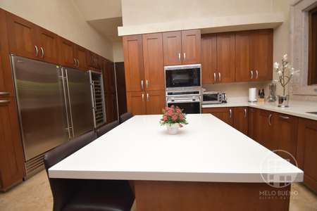 cisterna de 15,000 lts. con equipo hidroneumático, transformador, puertas sólidas de caoba, y bodegas. Cuenta con amenidades como gimnasio, palapa para eventos y área de asadores.