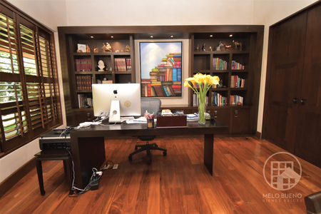 familiar. Oficina con biblioteca y recámara principal con walk in closet.