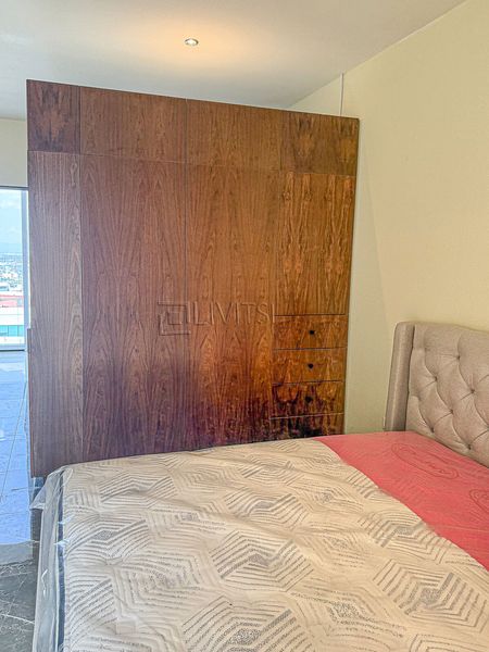 Loft en venta en Elysium. Llave en Mano, amueblado y equipado. Con excelentes acabados que cuenta con salita/ comedor, cocina abierta con cubierta de granito con barra desayunador equipada con parrilla eléctrica, campana, microondas, refrigerador, lava secadora, lámpara colgante, boiler, muro divisorio de madera con closet, cama tamaño matrimonial con base, respaldo, colchón, lámparas colgantes, incluye TV y sofá; baño completo con cancel de baño, balcón techado con vista a las montañas. mini Split, 1 cajón de estacionamiento.