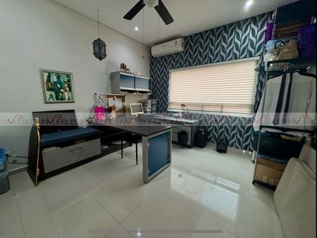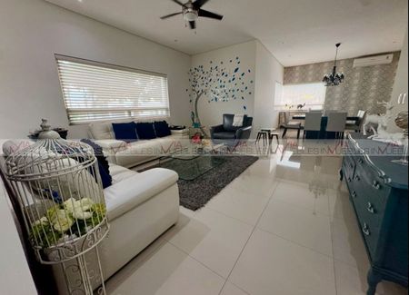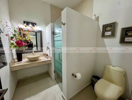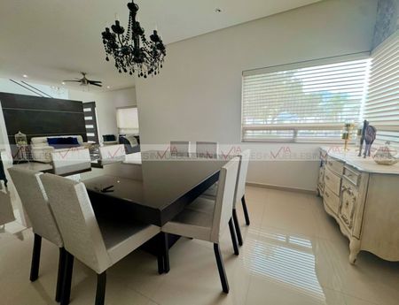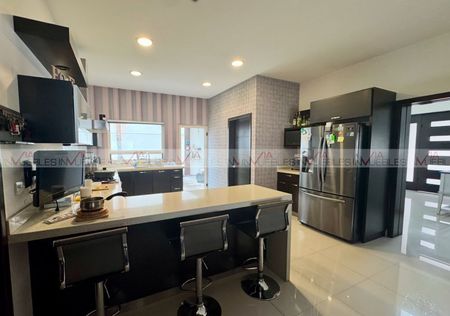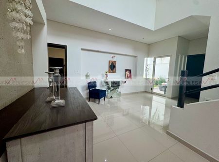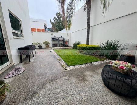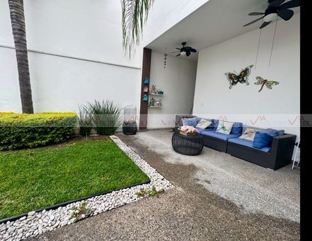 Casa en venta en esquina dentro de fraccionamiento privado con seguridad 24/7. En planta baja se tiene un amplio recibidor con doble altura, una oficina que puede ser una recámara en PB con baño completo. Sala, Comedor, Cochera techada para 2 carros con entrada a la cocina equipada con barra de cuarzo y espacio para un ante-comedor y salida al jardín. Lavandería con pasillo de servicio, cuarto de servicio con baño completo. En la planta alta se encuentra un amplio cuarto de televisión, tres recámaras muy amplias c/u con su baño y vestidor. La casa tiene 7 minisplits frio calor, tinaco y 2 bodegas. Tiene una ubicación privilegiada a solo 5 min de HEB Valle Alto. Id Gvia: 115204