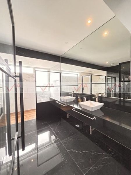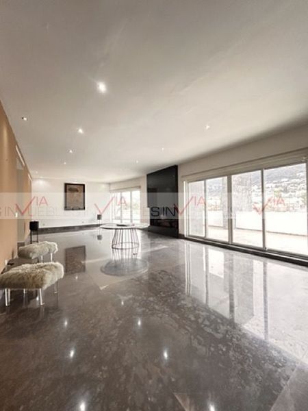 Elegante Penthouse en torre boutique ubicado sobre Lomas Del Valle. 377.35 mts2 interiores y 173 mts2 de terraza con un total de 551.29 mts2. Cuenta con 3 recamaras, cada una con baño y walk in closet, espectacular recibidor, cocina equipada, pantry, Family room, sala comedora con una enorme y moderna chimenea con vistas panorámicas. Sistema de aire acondicionado seccionado en todas las áreas. Acabados de lujo: pisos de mármol, paredes con detalles en mármol, cubiertas de granito en lavanetas y cocina. Electrodomésticos marca Miele, entre otros. Techos altos y mucha luz natural. Persianas eléctricas marca American Blinds en todas las áreas. 3 cajones de estacionamiento.