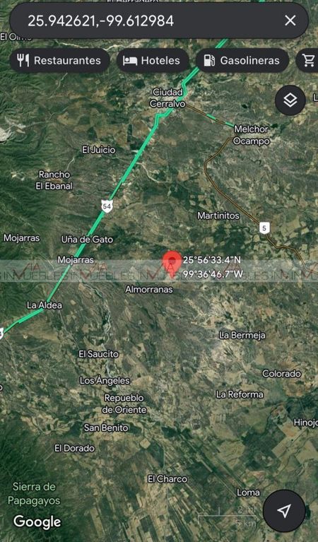 Amplio terreno excelente para cacería o ganadero, ubicado en la comunidad martinitos en el municipio de Cerralvo, N.L. Cuenta con pastas separadas, dos presas con 3 papalotes directamente de las presas y almacén de agua con bebederos, incluye vacas y sementales, tiene una pequeña construcción con dos cuartos. Id Gvia: 111741