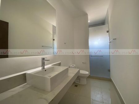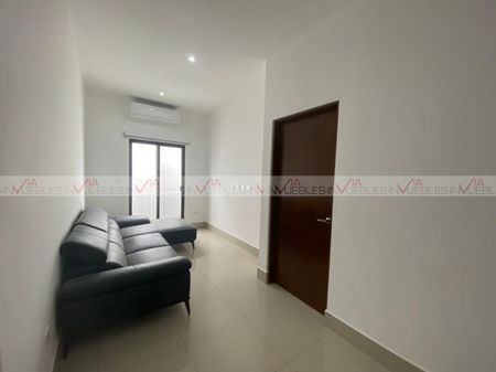 Bonita Casa en Venta para Inversionista en Carretera Nacional en el fraccionamiento, Privada los Vientos. La casa actualmente está rentada por dos años. En planta baja tiene una cochera para 2 carros, cocina, sala, comedor, patio, medio baño y lavandería. En la segunda planta hay 3 recamaras cada una con baño y la recamara principal con walking closet. El tercer piso es una terraza que se puede utilizar como área social. Cuenta con Cocina Integral y está equipada con 5 climas, estufa, refrigerador, lavadora y secadora. En la estancia tiene un sillón en L, además de canceles, espejos. Id Gvia: 111476
