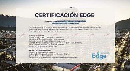 Cuenta con certificación EDGE (compromiso está con el medio ambiente y en la calidad de vida de las personas).