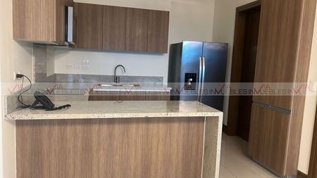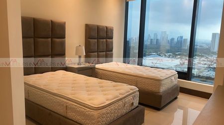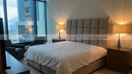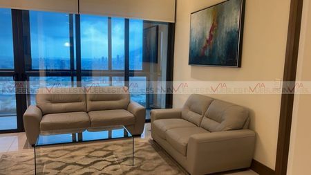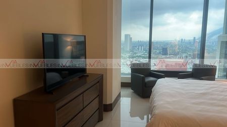 Este apartamento es amueblado está en el piso 33, $54,000 pesos mensuales + 6400 de cuota de mantenimiento 2 recámaras cada uno con su baño sala comedor cocina lavandería medio baño de visitas dos lugares de estacionamiento y una bodega.